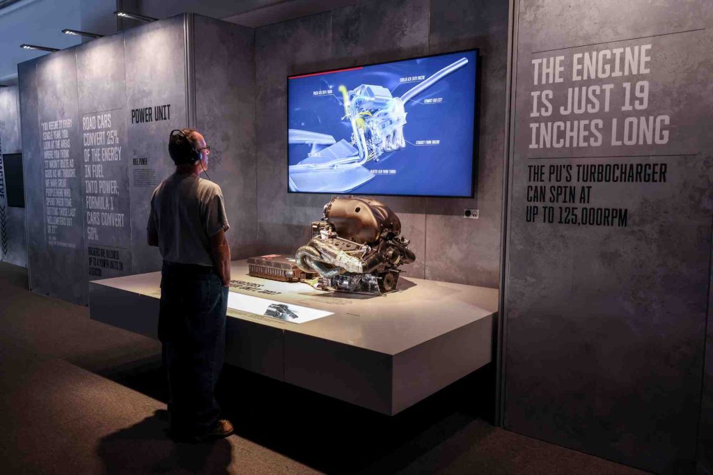 A través de una experiencia narrativa distribuida en seis salas especialmente diseñadas, con una superficie de más de 2.000 metros cuadrados, y desarrollada en colaboración con curadores, artistas y cineastas galardonados, la exhibición ofrece una mirada única al extraordinario universo de la Formula 1®.
