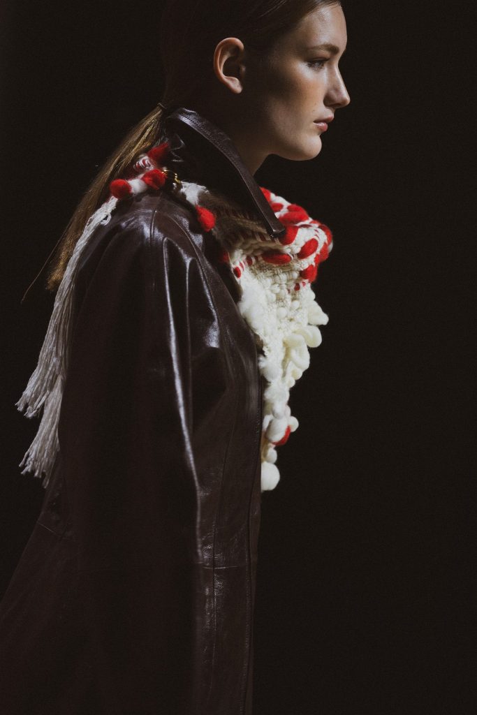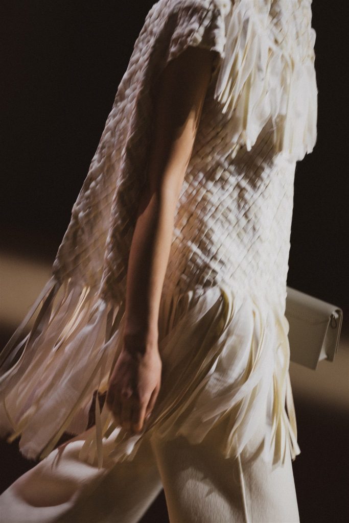 La colección encuentra inspiración en el diálogo entre la mente y las manos, transmitido de generación en generación, donde el cuerpo recuerda lo que el lenguaje a veces olvida. Una memoria colectiva donde conviven referencias culturales e históricas, desde los telares tradicionales hasta los primeros sistemas mecánicos que transformaron el tejido en un lenguaje codificado, como los telares de Joseph Marie Jacquard del siglo XIX, que utilizaban tarjetas perforadas para crear patrones complejos y que más tarde inspiraron los primeros sistemas de programación de Charles Babbage.